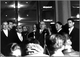 Vor dem schlichten Bau erscheint der Präsident der Europäischen Versammlung Paul-Henri Spaak, bedankt sich für die überreichte Resolution und versucht zu erklären, warum es mit Europa nur langsam voran gehe. Kein Wort über zukünftig fallende Grenzen, keine mutigenVisionen über ein frei gewähltes Europaparlament.  Und schließlich erklärt er: „Wir haben ernst gearbeitet. Protestiert nicht in Straßburg sondern vor den Parlamenten eurer Länder, damit diese dem Europarat größere Vollmachten einräumen.“