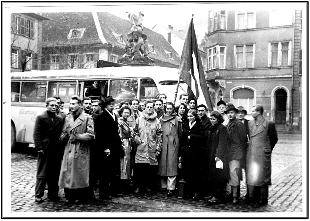 Wieder geht es auf engen Straßen weiter in Richtung Westen. In Hirschthal sind die Zöllner informiert, aber doch erstaunt, wieviele Busse mit Fahnen und Transparenten erscheinen. Inzwischen ist auch Professor Mouskhély aus Straßburg eingetroffen. Die Begeisterung kennt keine Grenzen. Kein Pass, kein Visum und und nun in Frankreich – eben in Europa!
